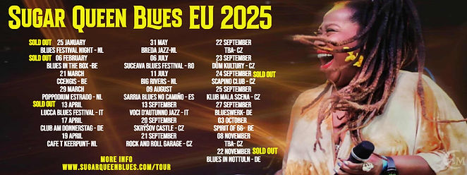 Copyright ℗© Sugar Queen BluesThe Service and all materials therein or transferred thereby, including, without limitation, software, images, text, graphics, logos, patents, trademarks, service marks, copyrights, photographs, audio, videos, music and all Intellectual Property Rights related thereto, are the exclusive property of Sugar Queen Blues. Except as explicitly provided herein, nothing in these Terms shall be deemed to create a license in or under any such Intellectual Property Rights, and you agree not to sell, license, rent, modify, distribute, copy, reproduce, transmit, publicly display, publicly perform, publish, adapt, edit or create derivative works thereof. KvK: 69893128